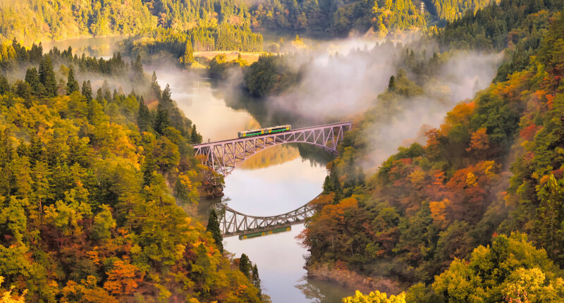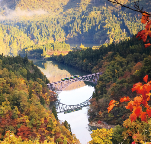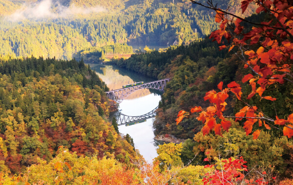 - 秋色に染まった奥会津・只見を車窓やダムから楽しめる。