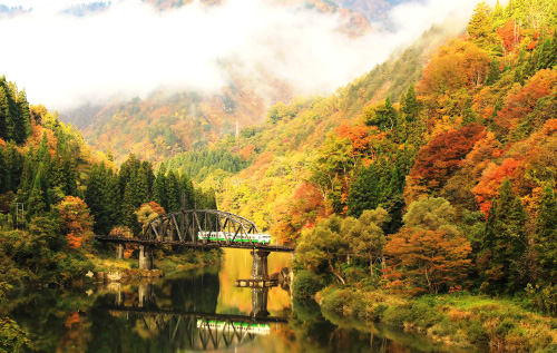 - 只見線車窓からの紅葉の絶景を見る。